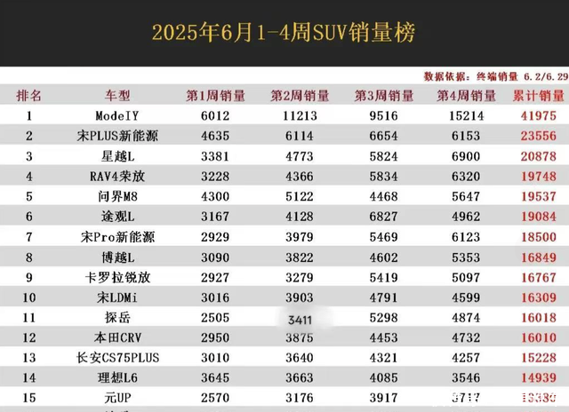 首先我们来看看特斯拉Model Y的表现,6月销量达到了41975辆,稳居第一梯队,同时相较第二名宋PLUS新能源领先超过18000辆,显示出较强的统治地位,其成功源于季度末集中交付策略及新能源下乡政策推动,目前Model Y在下沉市场渗透效果显著。